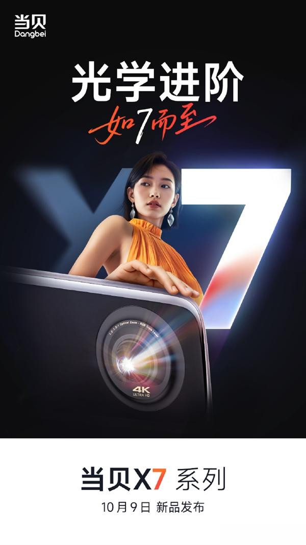 据悉,全新当贝X7系列高端投影将在10月9日下午2点的当贝秋季新品发布会上亮相,定位为“高端投影新标杆”。